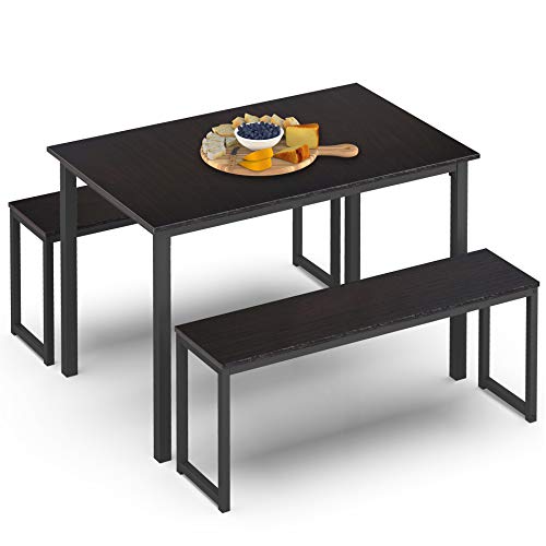 HOMOOI Dining Table Set for 4, 3 Pieces Kitchen Table with 2 Benches, Modern Wood Grains Table and Chairs Dinette Set…