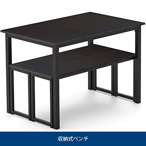 The 2 benches fit right up under the table when not in use,space saving and convenient.