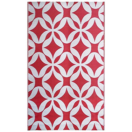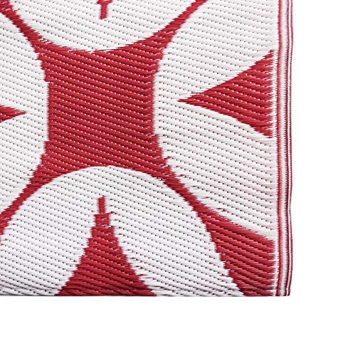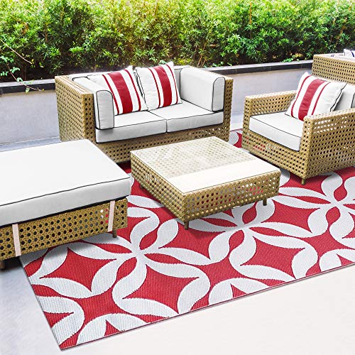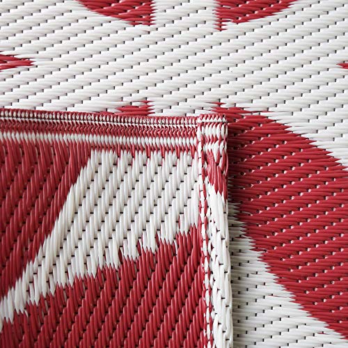 iCustomRug Outdoor Rug Mat- Geometric Floral Red and White 8’X10′ Reversible Picnic and Beach Area Rug, Perfect for…