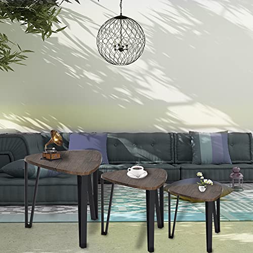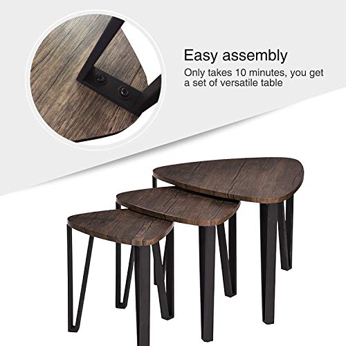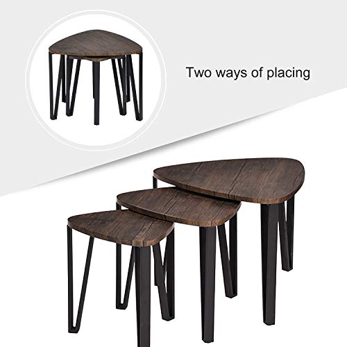 Nesting Coffee Table Sets–[STYLISH] Rounded triangular MDF walnut table tops that stand on sturdy black metal hairpin legs, protected for kids, more safe and practical. Match with industrial, scandi, nordic, mid century up to date design.