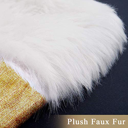 RUSTIC FEEL. burlap body with soft plush faux fur cuff. Add a warm & luxury touch on your holiday decor.