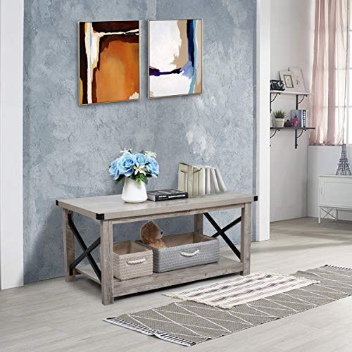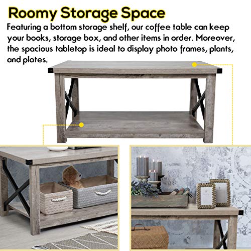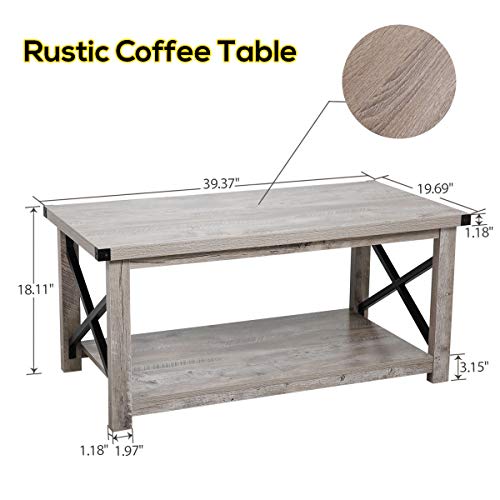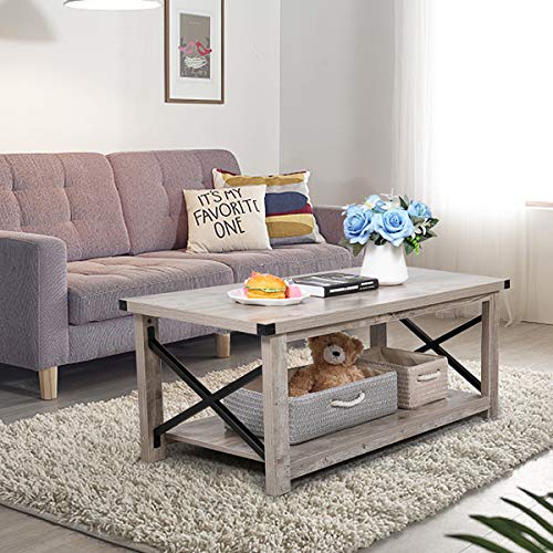 🍰【Metal Accents Double As Strong Beef up】Made from grey wash particleboard as well as metal Beef up beam, the wood and metal coffee table is sure to complement your living room, which allows modern look and solid construction to blend seamlessly, with unique X side bar adding a nice touch that fits in with your rustic and farmhouse decor.