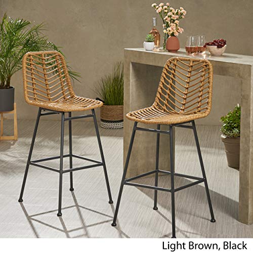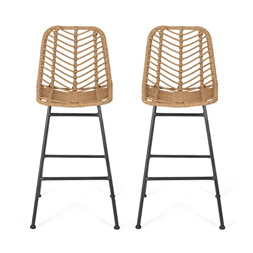 Add a touch of exquisite taste in your backyard bar with our refined yet outstanding bar stool set. Crafted to superior excellence, these bar stools perfectly blend rattan and metal to bring your out of doors space in conjunction with a flourish. The wrapped rattan design brings a brand new twist to a classic look, making this ideal for any style of décor. With a thin angled frame, this bar stool set also provides a minimalistic yet durable structure that offers a stylish flair in your space.