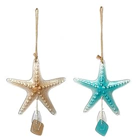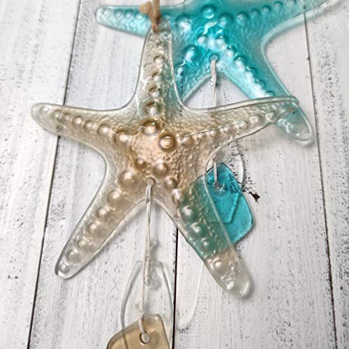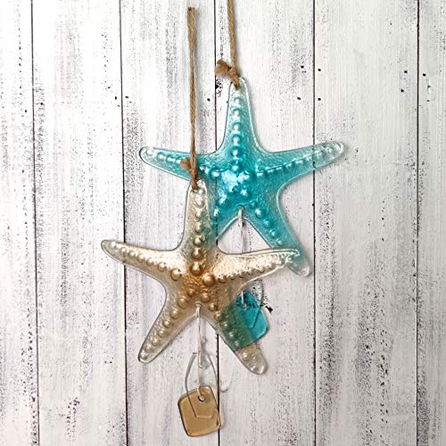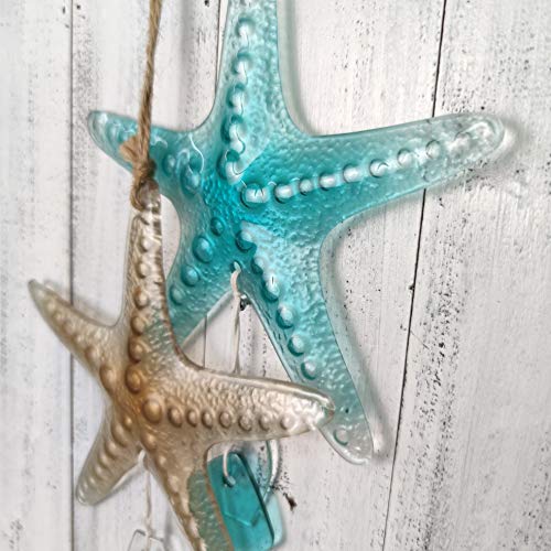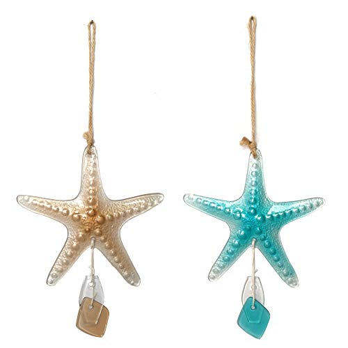 JOYBee fused Glass Starfish ornaments, Set of 2, Sea Life Nautical Home Decor, Recycled Wall Art 12Inch*5.8Inche, Haitian, Decorative, Christmas Tree Décor.