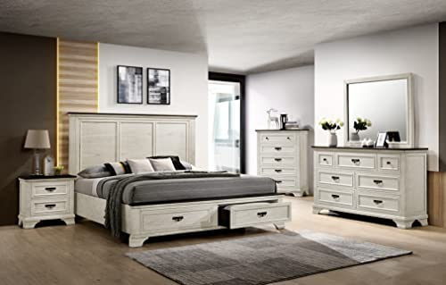 Kings Brand Furniture – 6-Piece Louise Wash White Queen Size Bedroom Set. Bed, Dresser, Mirror, Chest & 2 Nightstands