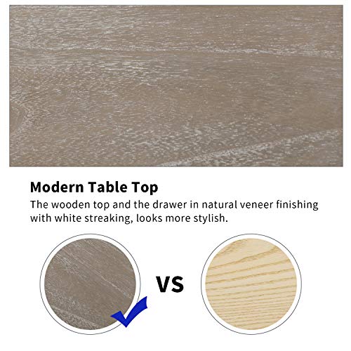 Material & structure features: The console table was sprayed paint. The wooden top in natural veneer finishing with white streaking, looks more stylish.