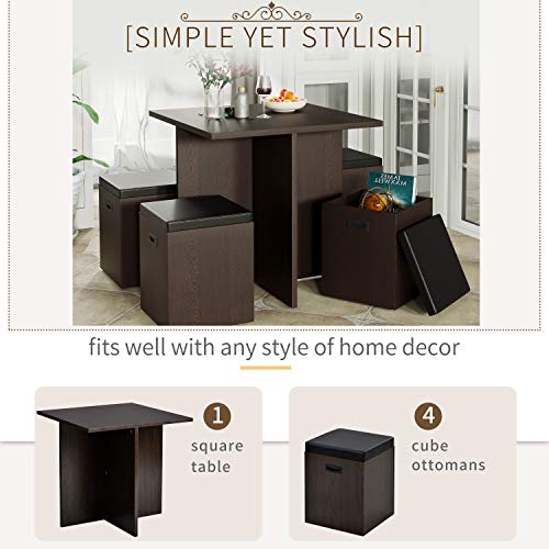 5-Piece Set with Storage Ottoman, Faux Wood Table and 4 Ottomans