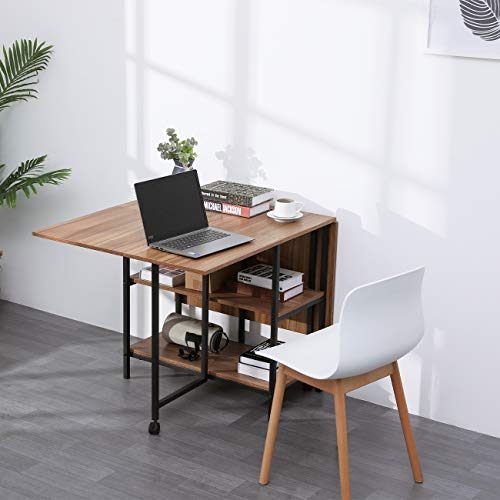 【FOLDING MULTIFUNCTIONAL TABLE】With the foldable modern design, our multifunctional table(NOT INCLUDE CHAIRS) can be utilized for plenty of purposes such as a writing desk in full or half-expanding, or a small desk in folding placed in a corner. There are 2 casters on the bottom of the table, which are lockable, and the flexible casters on the moving board make it easy to expand and fold the table. It’s pretty great to have this table !