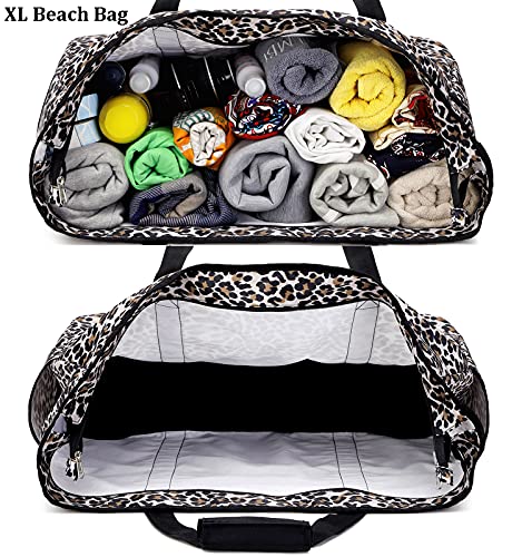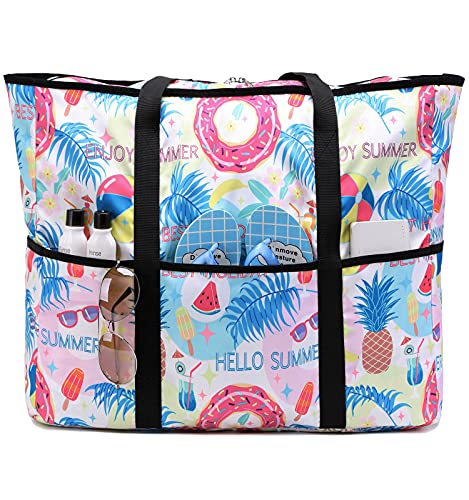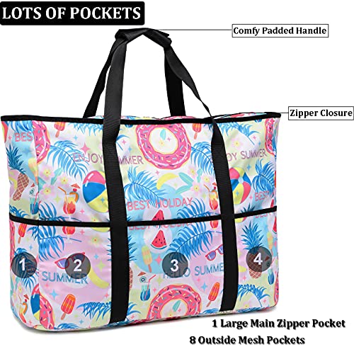 JIANYA Large Beach Bag for Women Waterproof Pool Bag Sandproof Beach Tote Bag for Vacation Essentials – 9 Pockets…