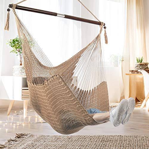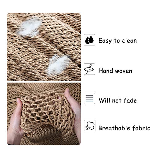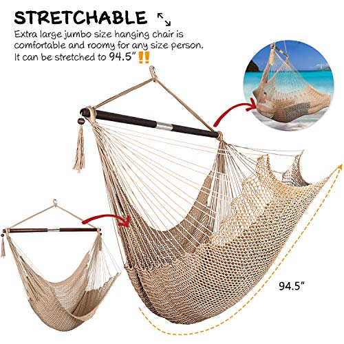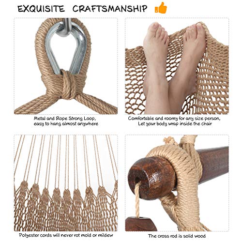 Material: Our Caribbean hammock chairs are made from a durable net-like structure and breathable polyester material, it is more luxurious than cotton. The 47-inch wide spreader bar provides ample shoulder room, making it more comfortable for you to sit down and rest on.
