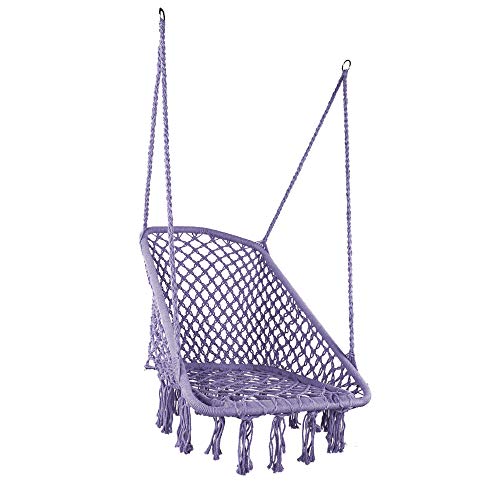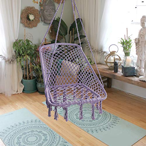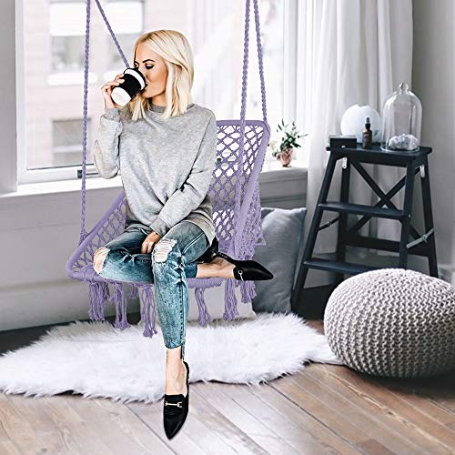 ✅【STYLISH & STURDY】 Handmade bohemian chic hammock style swing brings style and unique touch to any home —The rope and swing design features macrame net chair pattern with fringe tassels — Made of cotton to enhance the sturdiness.