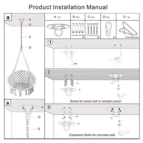 ✅【EASY TO INSTALL】 This lightweight hammock chair is easily to store and carry. You can set up in minutes with all hardware and accessories. Including all hanging accessories you needed:2 x Swing hook, 1 x Round pad eye, 4 x M8 Screw, 4 x M8 Expansion Bolts, 1 x 150 cm chain.Convenient to install it onto the ceiling, tree, shelf or any sturdy overhang that can support your weight.