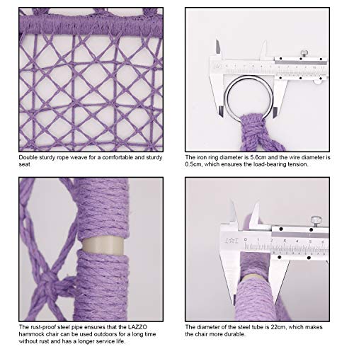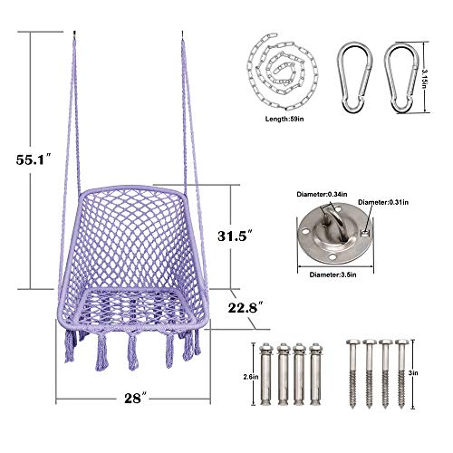 ✅【HIGH QUALITY】Overall Dimensions: 28″*22.8″*55.1″ including rope – Seat Dimensions: 28″*22.8″ – Seat Back Depth:31.5″.Support up to 260 pounds.Steel tube diameter 22mm,Heavy-duty steel pipes can prevent chair from deformation or dent and hold heavier weight than normal one. The hammock chair is made of cotton rope that offers comfort and softness.