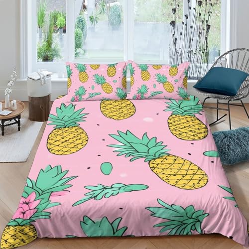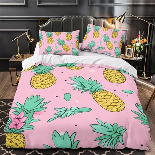 Lovely Pineapple 3D Printedcartoon Fruit Bedding Set Quilt Cover Duvet Cover Comforter Covers with Pillowcases Microfiber 2 Pieces for Childrens and Adults with Zipper Closure Twin(173x218cm)