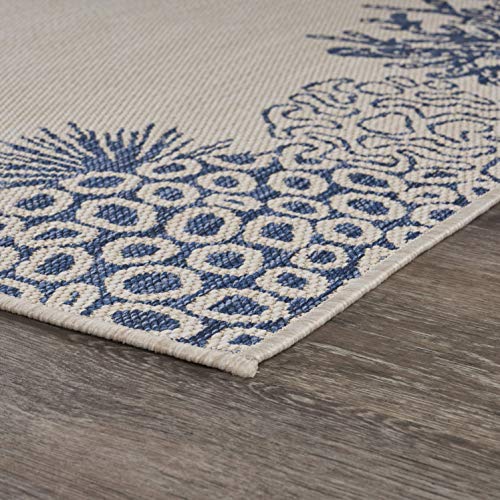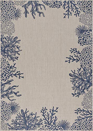 Escape to a coral reef oasis with this tropical inspired rug. This rug is an easy addition to a sun room, patio space, or dining area. The machine made construction allows this rug to be the perfect fit for high traffic area and sandy patio. This piece is easily shaken out and cleaned. Don’t overlook the endless opportunities this indoor outdoor collection has to offer for a variety of different spaces in your home.