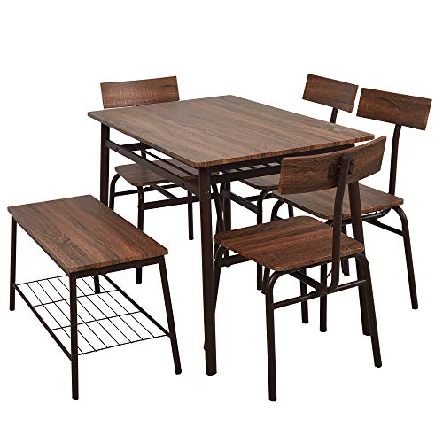 LUCKYERMORE 6 Piece Dining Room Table Set with Bench Compact Wooden Kitchen Table and 5 Chairs with Metal Legs Dinette…