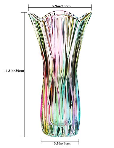 Large size, 12-inch height,6-inch the opening width. Crystal glass production, the vase is more glaring than general vase, particularly in reflecting light, the vase will likely be very bright.