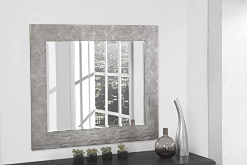 The distressed and rippled shape of Hammered Metal mirror collection lends a vintage touch to any room. The rectangular surface is complemented by the hammered ripples and aged zinc finish with a somewhat oxidized patina. The beveled glass adds a touch of softness to the whole look of the mirror. Highest for use as a wall mounted mirror for the lounge, bedroom, entryway, hallway, or bathroom. D-ring brackets are attached to the back for simple wall mounting without the usage of a wire. Overall Dimensions: 35. 5″ H x 29. 5″ W x 0. 75″ D; Glass surface measures 28″ H x 22″ W. Product materials: Glass, Polystyrene.