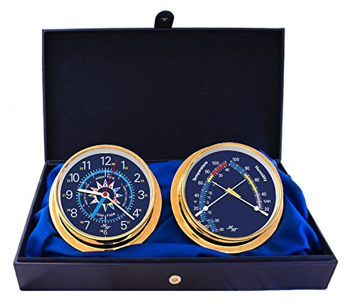 Master-Mariner Blue Mariner Collection, Nautical Cabin Gift Set, 5.75” Diameter Time & Tide Clock and Comfort Meter…