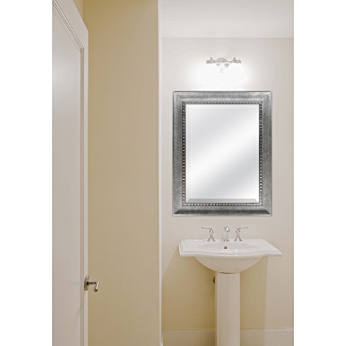 The 3 inch wide frame has a brushed antique silver finish with silver dentil molded inner edge