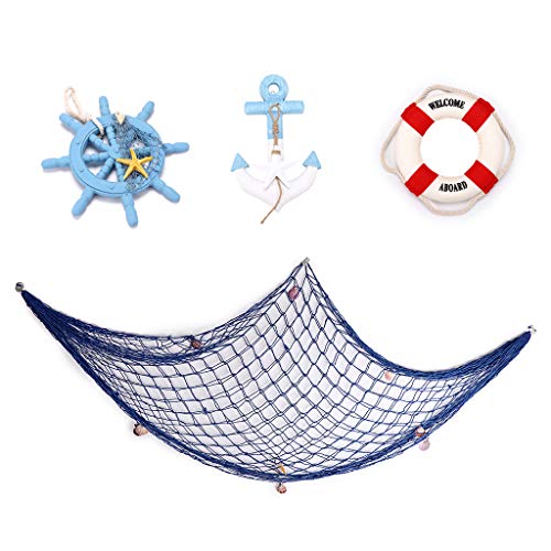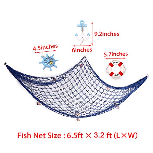 EXQUISITE NAUTICAL DECOR: The blue fishing net is decorated with realistic seashells and exquisite bonus ornaments including an anchor, a ship wheel and a lifebuoy. Add a touch of nautical chic to your own home decorations and craft projects