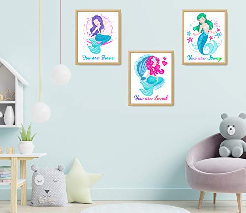 This cute mermaid set works as girls room wall decor and girls wall art!