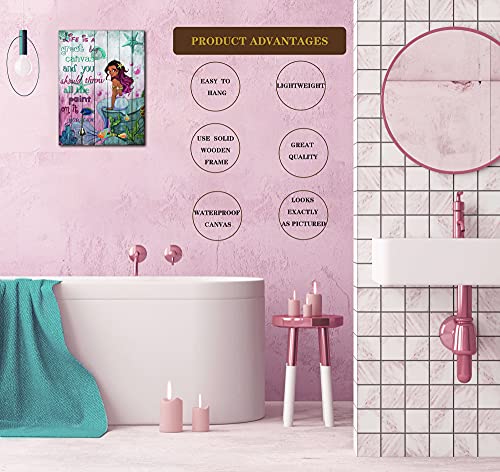 【HI-Q MATERIAL】 mermaid wall decor ,mermaid bathroom decor, mermaid decor for girls room,, Top quality, HD prints on premium canvas, waterproof canvas, UV resistant, fading resistant indoor.