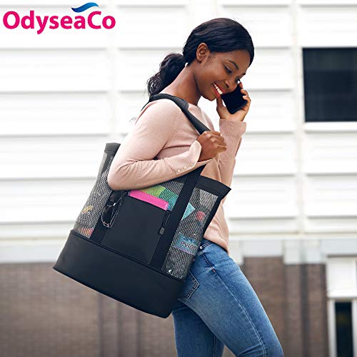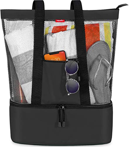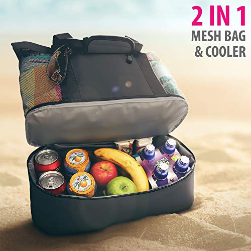 BEST BEACH BAG | Enjoy the convenience of this fashionable, lightweight, canvas and mesh zippered beach bag with an additional cooler bag compartment.