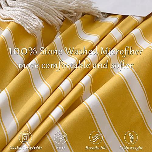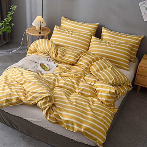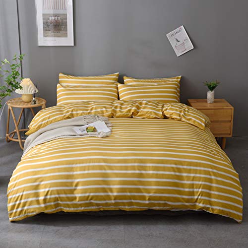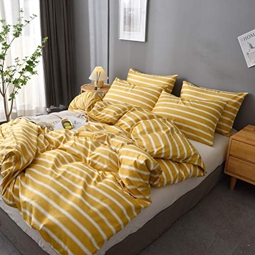 M&Meagle 3 Pieces Stripe Duvet Cover Yellow Set with Zipper Closure,100% Microfiber Fabric,Luxury Hotel Quality Bedding…