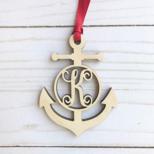 This anchor wooden ornament is ready-made with a “Ok” monogram.