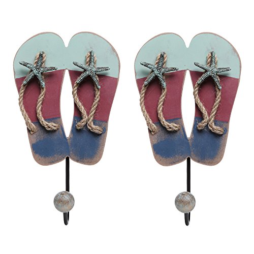 Decorative pair of starfish flip flop sandals style wall mounted coat hooks, perfect for adding beach theme fun to your home décor