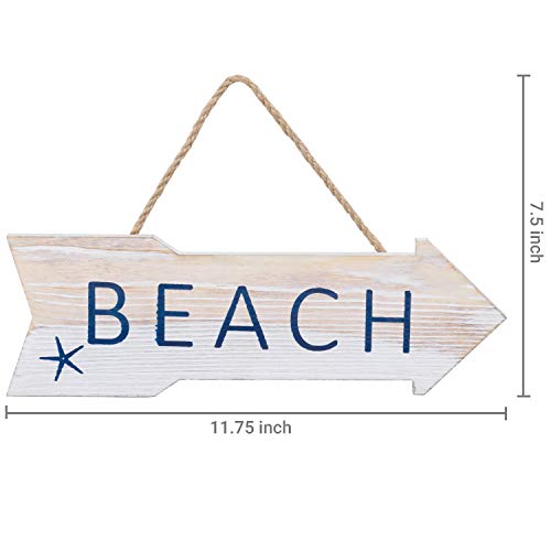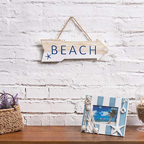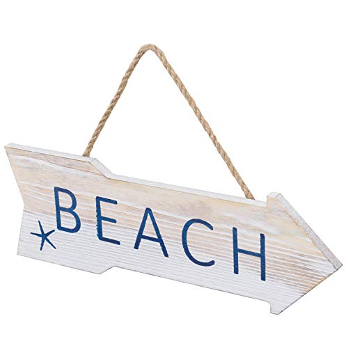 Point the beach with this decorative ocean inspired sign. Featuring a cutout wooden arrow and distressed whitewash finish with BEACH blue lettering and starfish, this sign is sure so as to add an island feel to any room in the home. A twisted just Most sensible rope allows for instant hanging on correct mounting hardware (mounting hardware now not included).