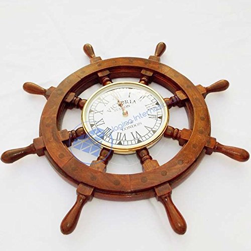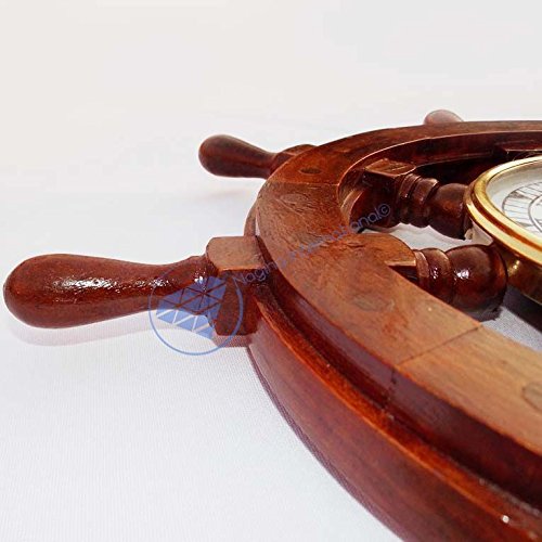 Exclusive -16″ Nautical Ship Wheel With 8 Spokes and 6″ Quartz Clock! Lovely home decor product. It’s the replica of the steering Wheel of Ships and Boats!. It adds a phenomenal nautical accent to your home!. Built With High Quality Solid Sheesham Wood which has been treated and Seasoned to resist the worst of the condition.! Please note this product is for decor purpose handiest!. No Practical uses can be implied on it. Exclusively sold and manufactured by Nagina International