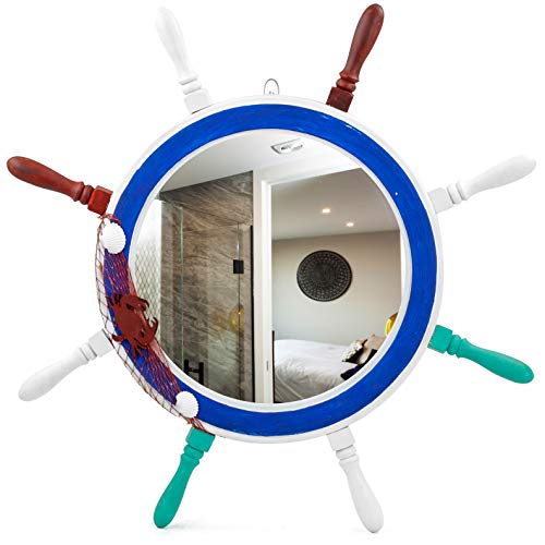 Multi-Colored Nautical Home Decor Ship Wheel Mirror. Its a stupendous thing for individuals who love Nautical Life Styles and this one goes so as to add so much on your Homes and Places. Multi-Colored Are very attractive and Mirror has a high gloss reflective Mirror which is very Crystal Clear and cleared once before dispatch!.