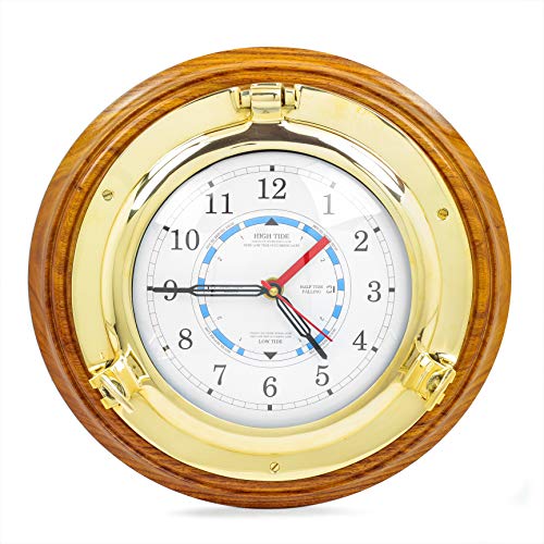 Solid Brass Porthole Nautical Time’s Clock on wooden solid hardwood Wooden Base That is only a time’s clock but it’s made within the style of Tide because of this that the dial of the clock is tide style like and includes a fake tide hand which does not predict any tide movements even as it has a perfectly working time’s clock. Time & Tide movements/clocks are expensive so this a replica of that but without tide movements. Note: This isn’t Tide Predicting Clock.