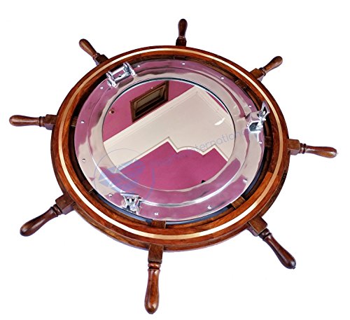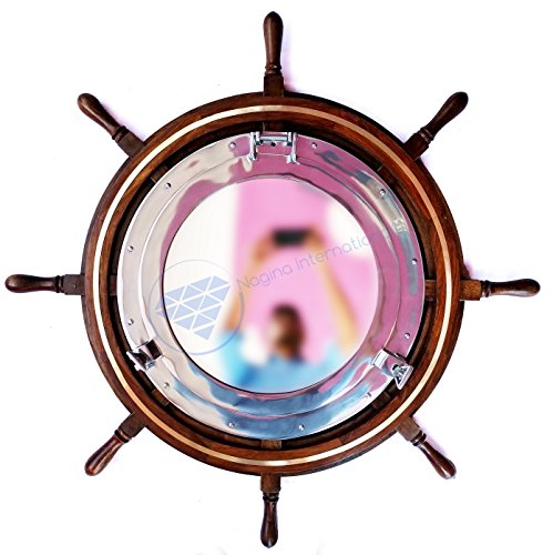 36 Inches Nautical Ship Wheel With 21 Inches Aluminium Porthole Reflect , fabricated from Aluminium. Ship Wheel Has been neatly crafted the use of Cast Sheesham Picket which is unique in INDIA. The craftsmanship Can Be Seen in product itself. Exclusive from Nagina World
