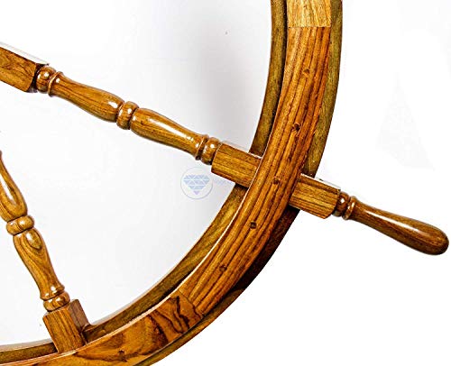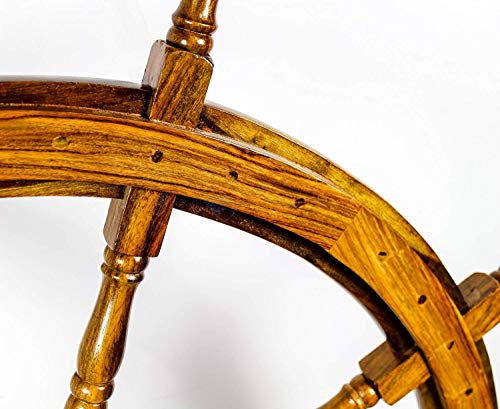 Very Simple And Beautifully crafted Premium Quality Wooden Ship Wheel. Its a lovely piece of Home Decor and we all would love it hung on our walls. Plus , it makes a great gift for pretty much every occasion and yes , Christmas too. Built With premium Quality , this is true work of craft and we are proud to present this to you. It features a brass hub which has a keyhole of 1 ” and perfect sits to the steering rod of the Boats and Ships , its not made for that but to be hung on wall. Keep Exploring for many more decor & size options. largest collection