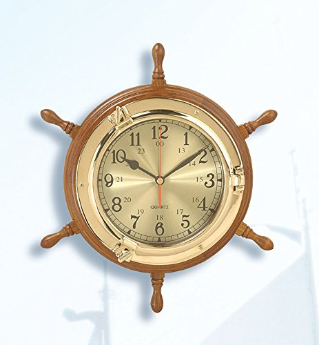Get Free Shipping at the 13″ Nautical Ship’s Wheel with Porthole Clock! This beautiful Nautical Ship’s Wheel with Porthole Clock will make an elegant nautical decoration for your house or place of job. It is one of the popular and beloved items we sell. Comprised of quality wood and brass, it features precision interior components and combines two of our hottest nautical items; ship’s wheels and portholes. It measures 13″ in diameter from spoke to spoke. The clock itself is 8″ in diameter. For more nautical and beach themed clocks, see our Nautical Clocks section. Buy the 13″ Nautical Ship’s Wheel with Porthole Clock lately and get Free Shipping and a really perfect price from Nagina International even as supplies last!