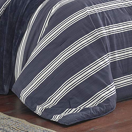 Get in a position for the upcoming school year with a new bedding collection from Nautica. The nautical horizontal stripes in this ensemble will perfectly update any dorm room or apartment. Convenient for students heading back to college, the comforter packaging doubles as a bonus laundry bag. Duvet cover features bottom button closures at the side of additional inner corner ties. Duvet insert isn’t included. Included shams feature a zipper closure. Ensemble is machine washable for simple care. Twin/twin xl duvet set includes: 86”L x 68”W duvet cover and one 21”L x 27”W standard sham. Full/Queen duvet set includes: 92”L x 88”W duvet cover and two 21”L x 27”W standard shams. King duvet set includes: 92”L x 107”W duvet cover and two 21”L x 37”W king shams.