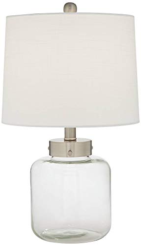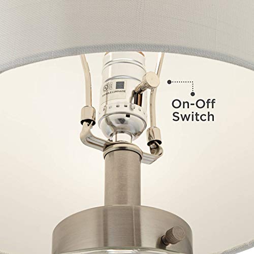 This fillable glass accent lamp allows you to easily update your decor on a whim. The clear glass body can be filled with keepsake items, collectibles, or other decorative pieces for a truly unique accent lamp. A light linen drum shade up top lends itself to any collectible you put in the base, and it also creates a pleasing glow in the room. Easy on-off switch for operation.