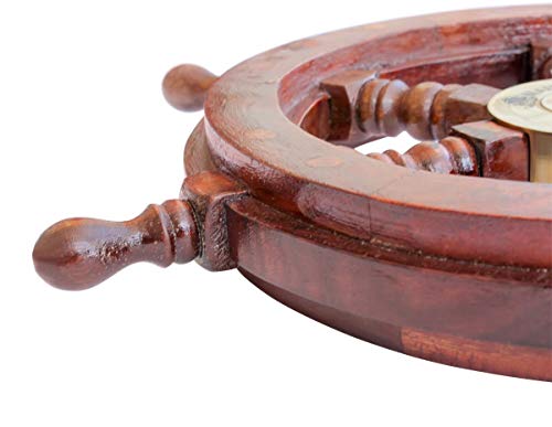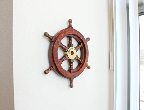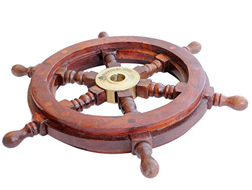 High Quality Wooden Ship Wheel 12″ in Diameter with solid brass center hub