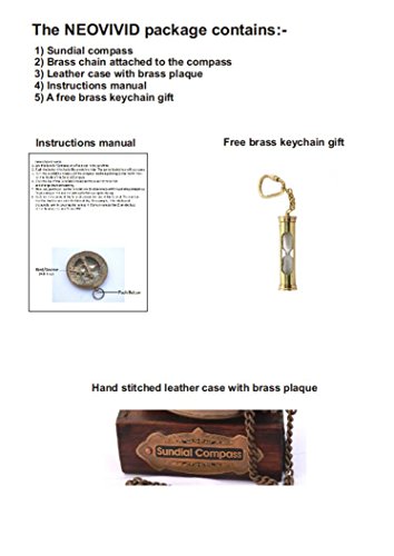 Collectibles Nautical 3″ Push button sundial compass in antique finish with leather case. The chain shown with lock could also be included. A free brass keyring is sent along as a gift. It might for sure make an excellent gift for a maritime, nautical and out of doors enthusiast. Subject material : Brass, Leather Finish : Antiquated Brass Diameter : 3 Inches approx. The compass in addition to the sundial are functional. It may be used for basic measurements. Handmade, not sold as antique. Made in India by highly skilled craftsmen.
