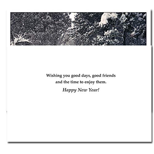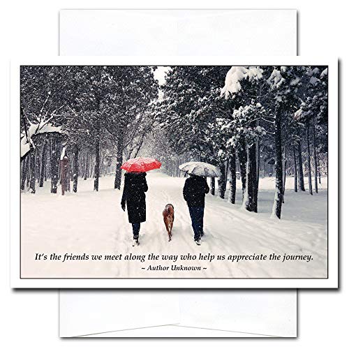 CroninCards “Good Friends” New Year’s greeting card is designed to delight the recipient and reflect well at the sender. These cards have universal appeal and will also be sent with confidence to any recipient. The cover shows a two people and a dog walking together on a snowy day and a quote that reads: ” It is the friends we meet along the way who assist us appreciate the journey.” The inside reads, Wishing you good days, good friends and the time to enjoy them. Happy New Year!