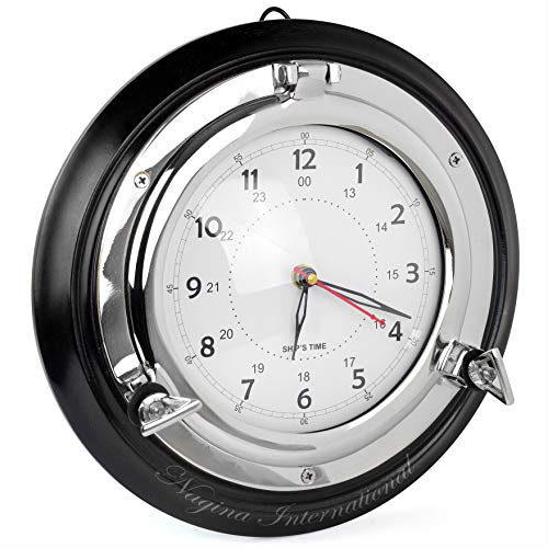 Nickle Porthole Clock On Black Wooden Base | Pirate’s Age Nautical Room Wall Hanging Decoration Ideas | Beautiful Kid’sā¦