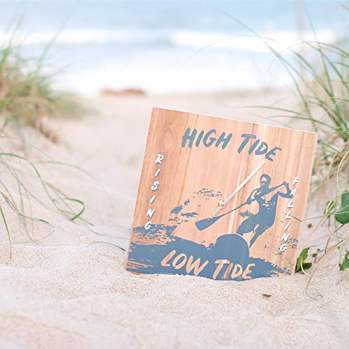 We have taken a beautiful piece of solid paulownia wood (sustainable) and developed a new style of tide clock for the beach lover! Each of our clocks is hand made and due to this fact, one of a kind. Each piece will vary relatively in design because of the hand made process and wood variations.