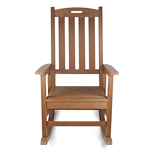 Durability — Fade-resistant, the out of doors Rocking Chair can face up to a range of climates including hot sun, heavy snows & rains, and strong coastal winds and does not dent, crack, peel or rot like the wood chairs.