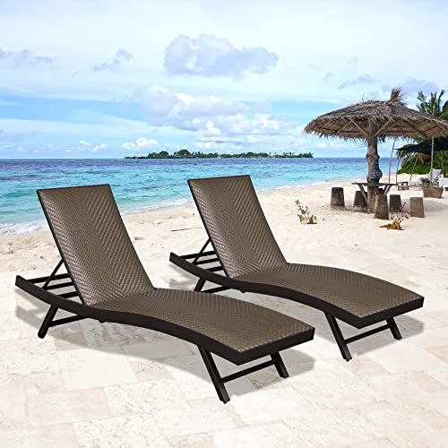 ❤STURDY & DURABLE: Domi outdoor living outdoor wicker chaise set is constructed with e-coating aluminum frame,which show premium in rust-resistant and fade-resistant.Perfect for yard,garden, poolside, deck and beach.
