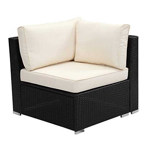 Size: Corner Chair:27.52″*16.92″*12.99″ Middle Chairs:31.88″*16.92″*12.99″ Tea Table:27.55″*27.55″*14.17″