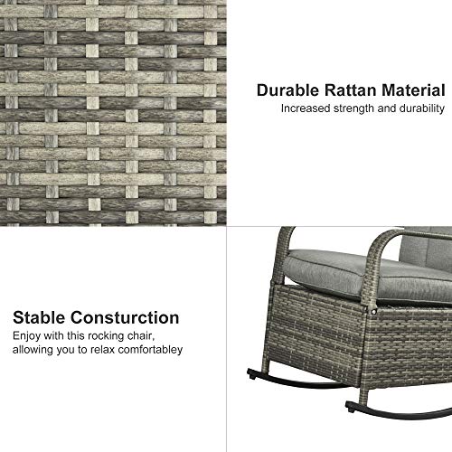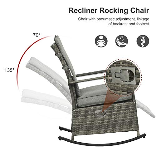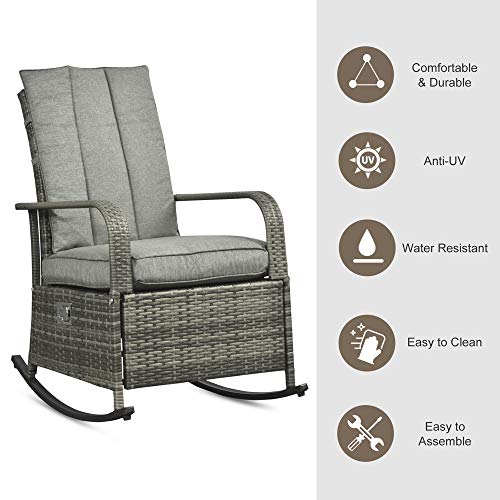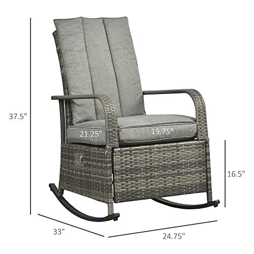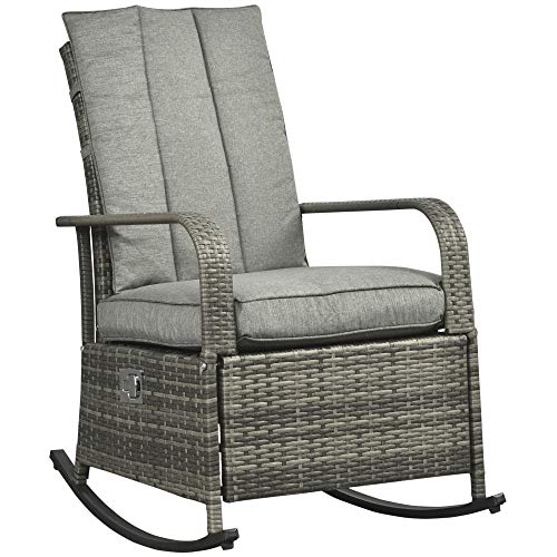 The Outsunny outdoor wicker patio adjustable reclining rocking chair with footrest reclines up to 135 degrees to help you find the most comfortable position. The soft, padded cushions allow you to sit down or lie on the chair with your whole body comfortably relaxed. The sturdy steel frame is made of weather-resistant and wear-resistant woven PE wicker to provide superior durability and stability and also cleaning convenience.