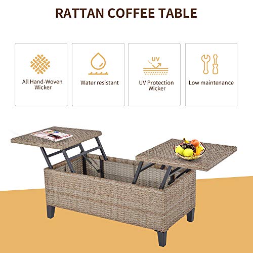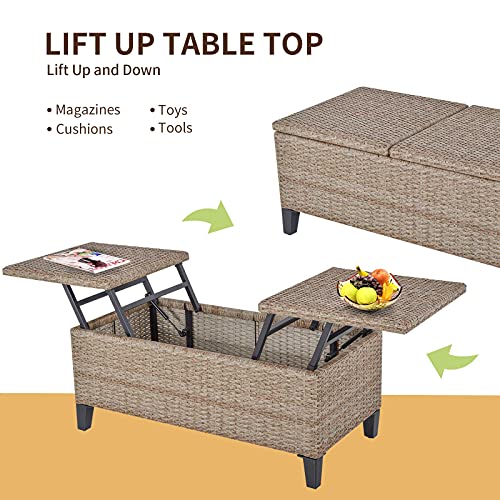 ✅OUTDOOR RATTAN CENTER COFFEE TABLE DIMENSIONS: Overall Dimensions: 40.5″ L x 19.75″ W x 18″ H. Inner Dimensions: 39.25″ L x 13.75″ W. Feet Height: 4″. Lift-top Height: 24″
